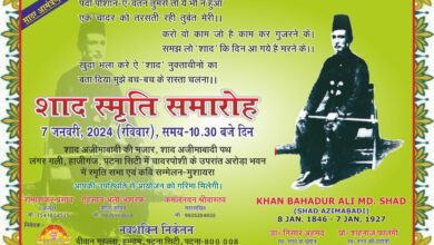 शाद अजीमाबादी की पुण्य तिथि के अवसर पर 07 जनवरी को स्मृति सभा, सम्मान- अलंकरण तथा कवि सम्मेलन मुशायरा का आयोजन – पटना ।