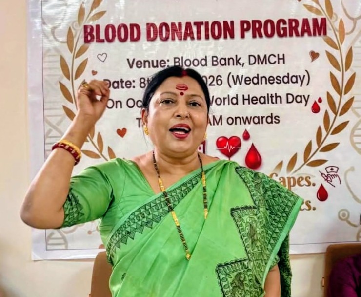 दरभंगा। विश्व स्वास्थ्य दिवस के अवसर पर लहेरियासराय स्थित दरभंगा चिकित्सा महाविद्यालय एवं अस्पताल के रक्त अधिकोष प्रांगण में बुधवार को रक्तदान शिविर का आयोजन किया गया। शिविर का आयोजन नेशनल मेडिकोज ऑर्गेनाइजेशन की डीएमसीएच इकाई द्वारा किया गया। कार्यक्रम का उद्घाटन बिहार भाजपा महिला मोर्चा की प्रदेश अध्यक्ष एवँ राज्यसभा सांसद डॉ. धर्मशीला गुप्ता ने दीप प्रज्ज्वलित कर किया।