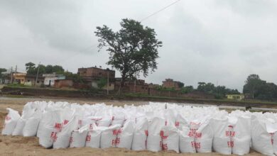 नदियों में कटाव रोकने के लिए बालू के बोरों से हो रही पिचिंग – नवादा ।