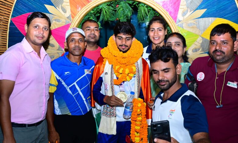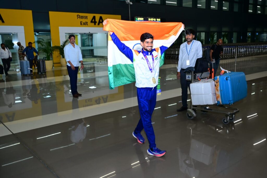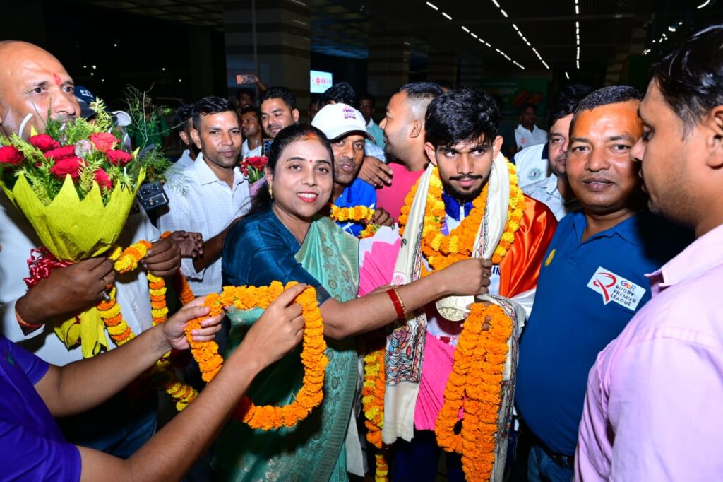पटना – दिल्ली में चल रही 12वीं वर्ल्ड पैरा एथलेटिक्स चैम्पियनशिप 2025 के T42 हाई जंप प्रतिस्पर्धा में रिकार्ड 1.91 मीटर की ऊंची छलांग लगा कर भारत के लिए स्वर्ण पदक जीतने के बाद पटना लौटने पर आज एयरपोर्ट पर जमुई, बिहार के शैलेश कुमार का पारंपरिक तरीके से भव्य स्वागत किया गया। बिहार राज्य खेल प्राधिकरण के महानिदेशक सह मुख्य कार्यकारी अधिकारी श्री रवीन्द्रण शंकरण भी शैलेश कुमार और बिहार के अन्य खिलाडियों को प्रोत्साहित करने के लिए दिल्ली में उपस्थित रहे और आज शैलेश कुमार के साथ ही लौटे हैं।