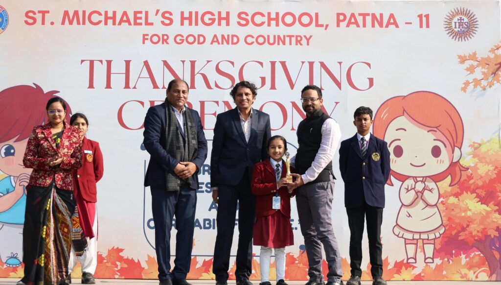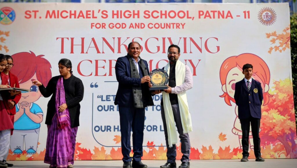 पटना :  सेंट माइकल्स हाई स्कूल परिसर में धन्यवाद दिवस (थैंक्सगिविंग डे) 2025–26 का आयोजन अत्यंत गरिमामय, भावनात्मक और उल्लासपूर्ण वातावरण में किया गया। यह अवसर विद्यालय प्रबंधन, शिक्षक, अभिभावक एवं छात्र समुदाय को वर्ष भर प्राप्त आशीर्वादों पर आत्मचिंतन करने और कृतज्ञता प्रकट करने का सशक्त मंच बना।